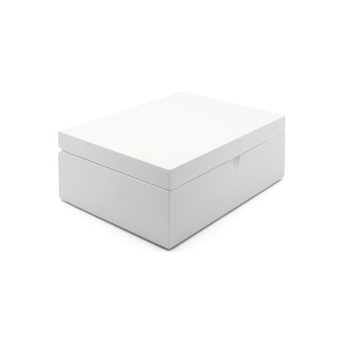 Theedoos voorzien van vier theeblikjes en een theemaatlepel. De theeblikjes zijn voorzien van een venster zodat je eenvoudig de inhoud kunt bekijken. Met de theemaatlepel meet je altijd de juiste hoeveelheid thee af. Verkrijgbaar in de kleuren wit, zwart en naturel.