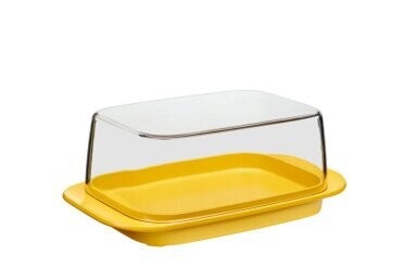 Praktische botervloot met deksel. De gele botervloot zorgt ervoor dat boter hygiënisch bewaard wordt. De botervloot kun je zowel binnen als buiten gebruiken en biedt ruimte aan 250 gram boter.