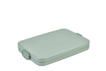 Lunchbox Take a Break flat in de kleur Nordic sage. Deze platte groene broodtrommel van Mepal past perfect in een laptoptas of rugzak en is geschikt voor maximaal 4 boterhammen. Hij is voorzien van een afdichtring die de inhoud altijd lekker vers houdt. Neem vanaf nu dus je eigen lunch mee in deze broodtrommel. Dat is niet alleen goedkoop, maar ook lekker en gezond!