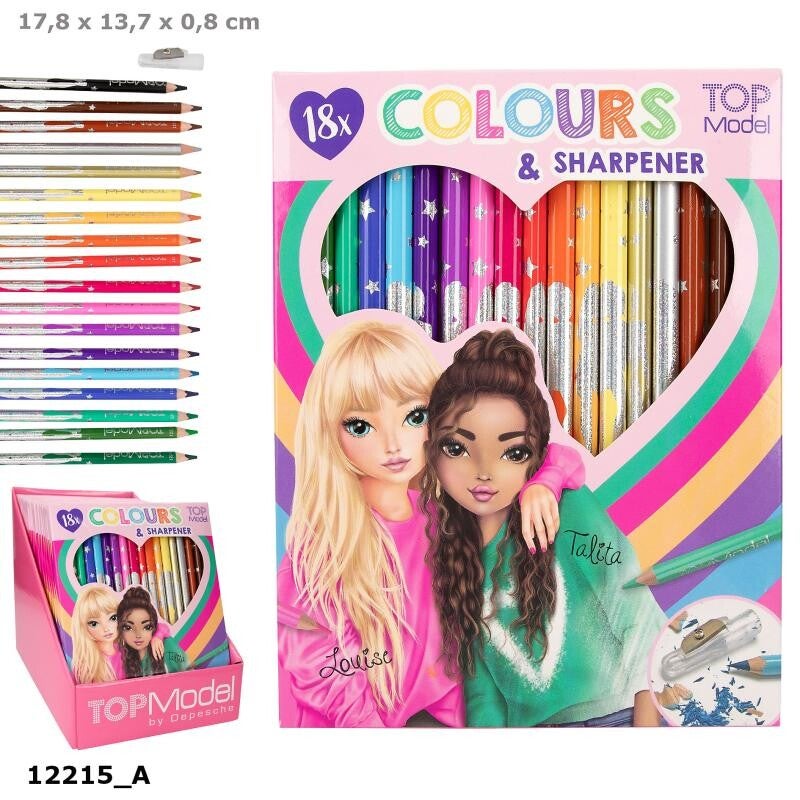 Alle kleurtjes die je nodig hebt: de kleurpotloden van TOPModel zijn er in 18 verschillende kleuren en samen met een puntenslijper. Met zachte, bijna onbreekbare vulling van hoge kwaliteit ook qua kleur. Het gaat bij deze kleurpotloden om dezelfde die in de TOPModel etuis zitten. De set is dus perfect als navulling!