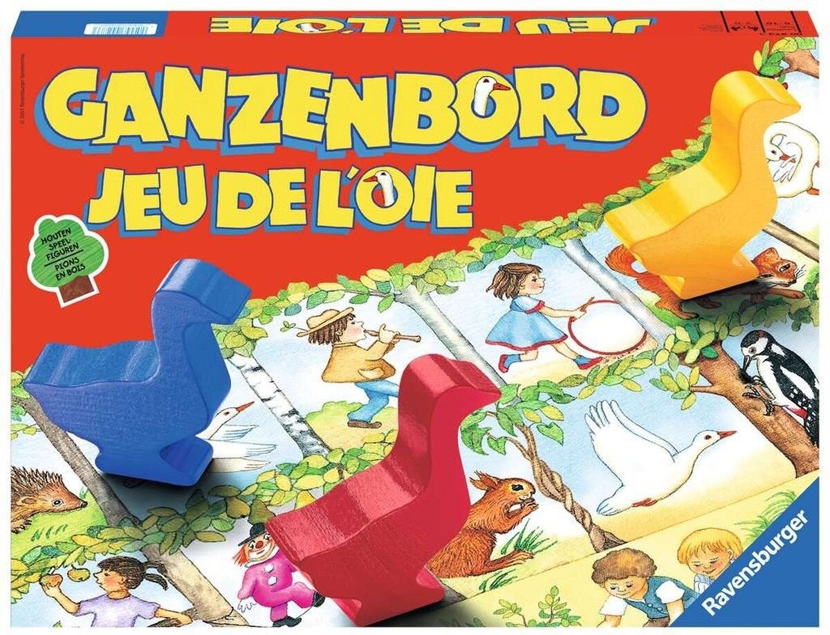 Deze Ravensburger klassieker en bestseller onder de spellen is geliefd bij kinderen en volwassenen in de hele wereld. De spelers moeten proberen met hun gans als eerste het doelveld te bereiken.