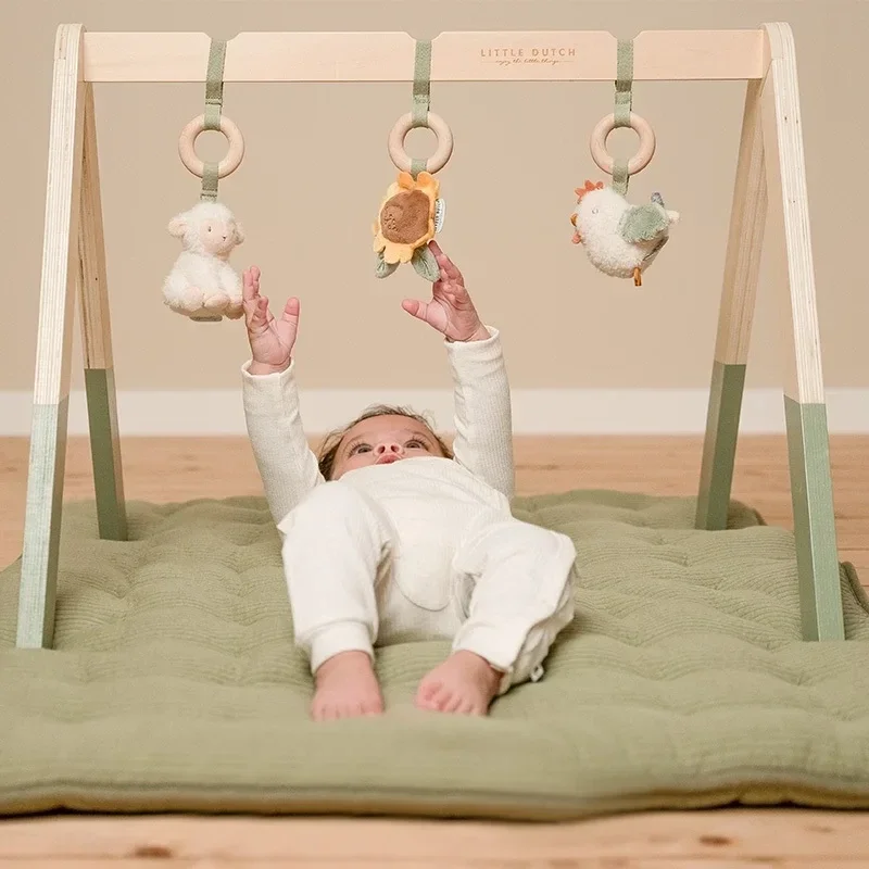 Omhoog met die kleine armpjes! Nieuwsgierige baby's vermaken zich kostelijk met deze houten babygym. Er zijn drie verschillende activiteitenspeeltjes die voor het vermaak zorgen, waaronder een vrolijk schaapje, een lief kipje en een kleurrijke bloem. De babygym ontwikkelt de hand-oogcoördinatie, verbetert de motoriek en stimuleert de zintuigen elke keer dat je kleintje naar een van de speeltjes grijpt. WAARSCHUWING: Om te voorkomen dat het kind verstrikt raakt, en zich bezeert, verwijder dit speelgoed wanneer het kind op handen en voeten begint te kruipen. Te monteren door een volwassene.