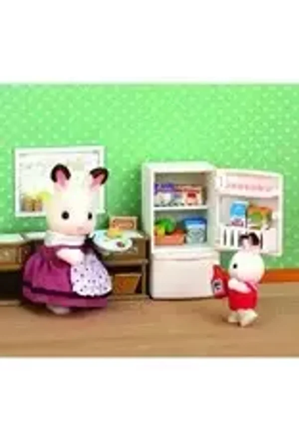 Een keuken is niet compleet zonder een slimme koelkast en deze leuke witte koelkast heeft volop ruimte, een grote vrieslade en er zit zelfs een dozijn eieren bij. Er zitten drie kleine notities bij die je op de koelkast kan plakken zodat de Sylvanians berichtjes voor elkaar kunnen achterlaten. In de gevlochten groentebak kunnen de Sylvanians hun broccoli, paprika en wortel bewaren (inclusief in deze set), zodat ze iedere dag hun vitamientjes binnenkrijgen. Er zitten ook bederfelijke producten in, zoals melk en vruchtensap, en droogwaren als ketchup. Voor de zoetekauwen onder de Sylvanians zijn er volop lekkere traktaties om ze te verwennen waaronder 2 dozen ijsjes, 1 heerlijke pudding, 2 bakken ijs, yoghurt en wat boter. Natuurlijk is er ook kaas, de heerlijkste kaas, om de set compleet te maken!