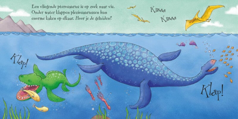 Een perfect boekje voor jonge dinofans. Als je op de knop drukt, hoor je prehistorische dieren brullen, krijsen en dreunen. Een stevig kartonboekje dat keer op keer gelezen en beluisterd kan worden.