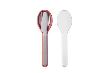 Deze stijlvolle en praktische bestekset Ellipse bestaat uit een mes, vork en lepel en wordt bewaard in een compacte kunststof houder. Ideaal voor onderweg!