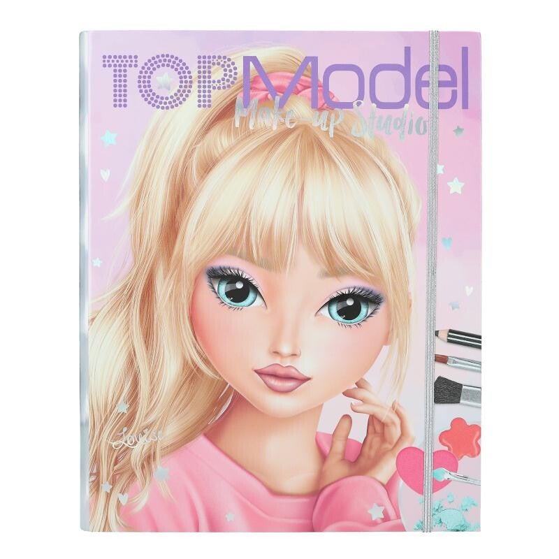 Mega make-up plezier: in het TOPModel Make up Studio boek kun je op een blok met 26 gezichten van modellen leuke opmaakstijlen uitproberen. Of met kleurpotloden of het bijbehorende make-up pallet. Deze bevat 9x oogschaduw (0,8 g), 3x rouge (2,5 g), 3x lipgloss (0,6 g), 1 eyeliner (0,9 g) en 4 kwastjes. Deze spullen kun je ook heel goed voor het opmaken van je eigen gezicht gebruiken. In een stevige map met toffe opmaakinspiratie en handleidingen.