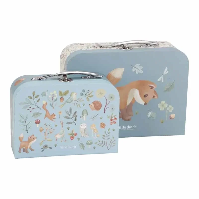 Ga op avontuur met onze vrolijke kinderkofferset! De set bestaat uit twee speelkoffers in het Forest Friends-thema, met schattige illustraties van een vos. De binnenkant is bedrukt met een mooie print. Beide koffers hebben een klassieke metalen greep en slotje, perfect voor kleine ontdekkingsreizigers.