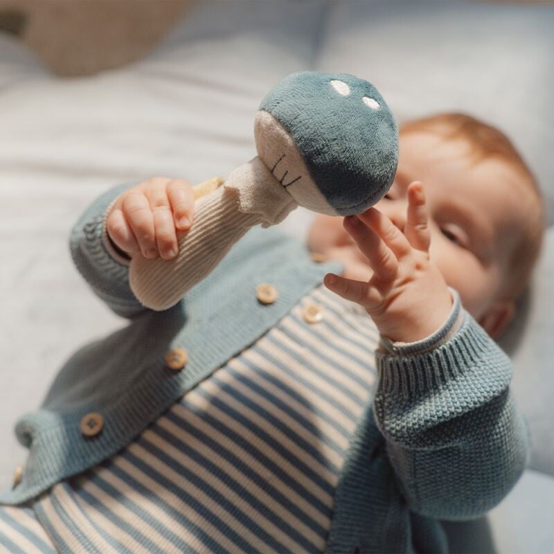 Rammel deze betoverende paddenstoel! Als je er mee speelt hoor je een plezierig geluidje. De rammelaar stimuleert de hand-oogcoördinatie, is van heerlijk zacht materiaal gemaakt en kan makkelijk door kleine kinderhandjes vastgepakt worden.