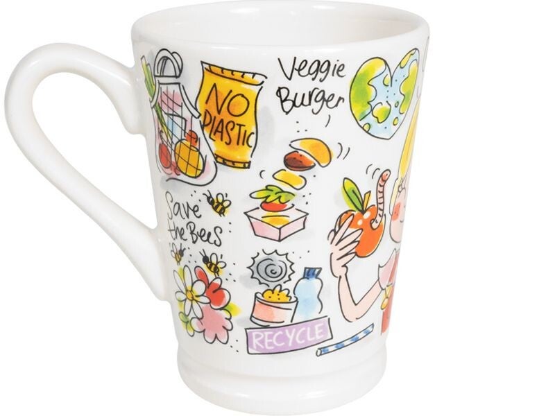 Ben jij een echte ‘green girl’ of ken je iemand die dat is? Dan hebben wij een leuke nieuwe XL beker (Mazagranvorm). Hierop staan verschillende illustraties van o.a. een fiets en de natuur in Blond stijl.