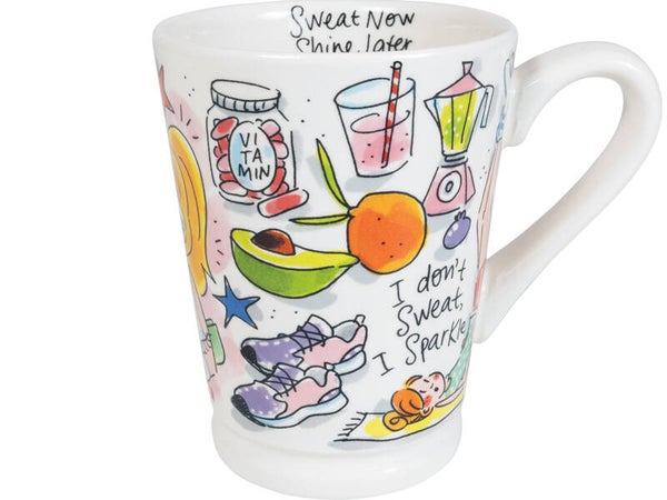 Begin je dag vol energie met de Fit Girl Beker van Blond Amsterdam. Deze vrolijke mok is perfect voor je ochtendkoffie, thee of een verfrissend drankje na je workout. Versierd met speelse illustraties van sportieve figuren en de tekst "I don't sweat, I sparkle," straalt deze beker de kenmerkende, vrolijke stijl van Blond Amsterdam uit. Ideaal voor fitnessliefhebbers en een geweldige aanvulling op je Blond Amsterdam collectie.