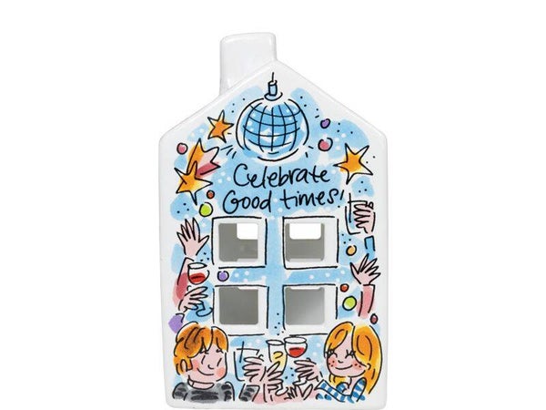 Home Sweet Home! Hoe leuk zijn onze theelichthuisjes. Sfeervol licht komt door de raampjes van het huisje. Het nieuwste Home Sweet Home theelichthuisje past perfect in onze Even Bijkletsen collectie. Elke zijde heeft kenmerkende Blond illustratie. In huis genieten wij van de zelfgemaakte taartjes en van een kop thee op de bank of vieren we een feestje.