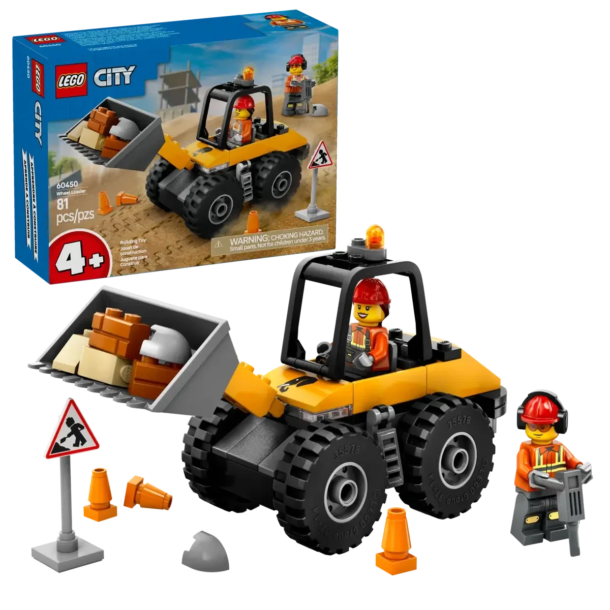 Laat je kind kennismaken met de spannende wereld van de bouwplaats met de LEGO® City Gele wiellader voertuigset (60450). Deze speelgoedgraafmachine voor kinderen vanaf 4 jaar heeft een grote laadschop en brede banden om over ruw terrein te rijden.De set bevat ook een verkeersbord, verkeerskegels en een drilboor en wordt geleverd met minifiguren van een bestuurder en een wegwerker voor fantasierijke rollenspellen en verhalen.
