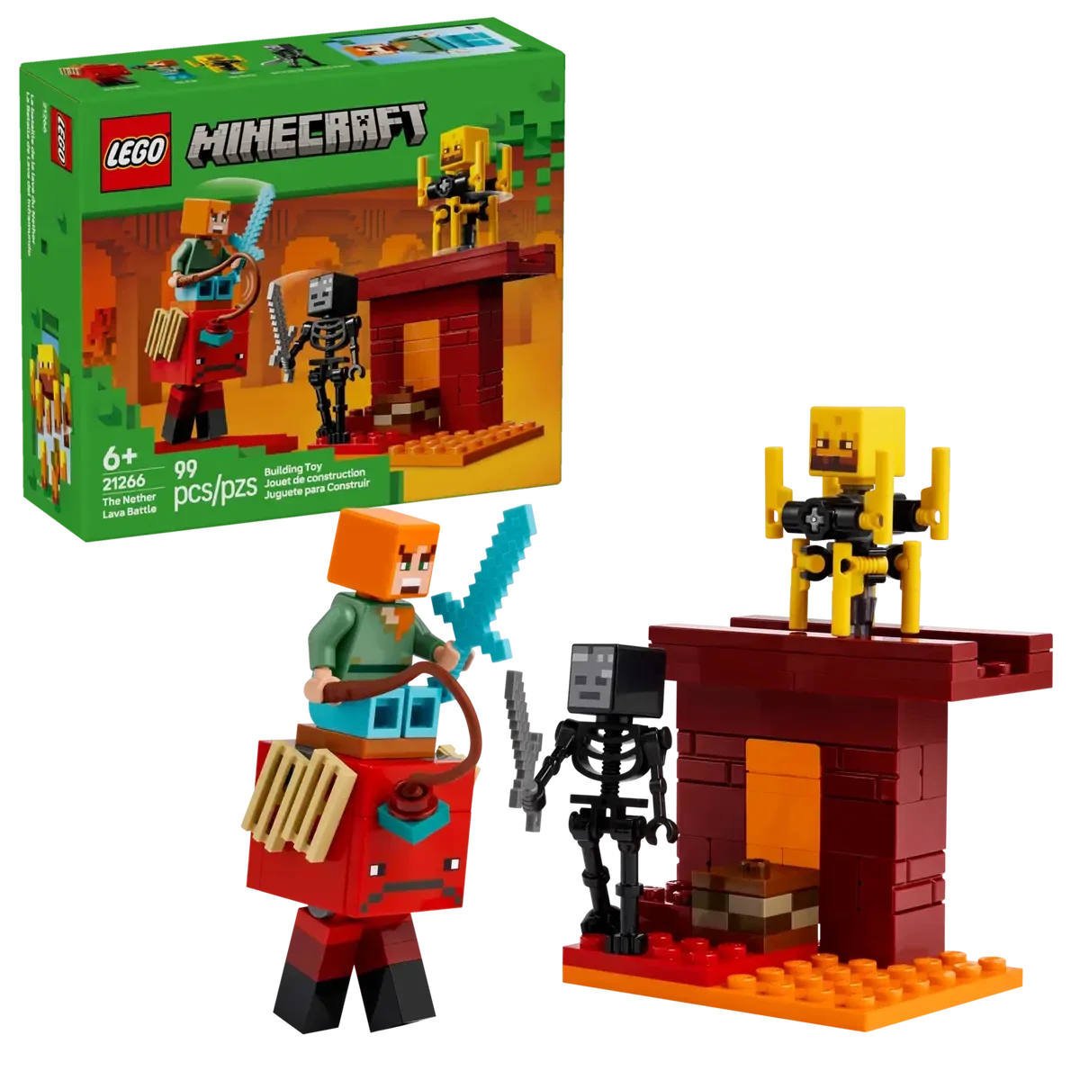 De lavastrijd in de Nether (21266) is een kleine LEGO® Minecraft® speelset uit de populaire videogame om zelf te bouwen. Dit veelzijdige Minecraft model bevat populaire gamefiguren, leuke functies en eindeloze actie, waardoor het een ideale traktatie is voor kinderen vanaf 6 jaar.