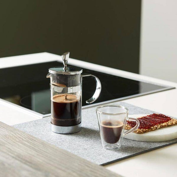 Bepaal zelf de koffie- of theesterkte en kooktijd met deze stijlvolle koffie & theemaker. Verkrijgbaar in 350ml en 600ml. Onderhoudstip: alleen het uitneembare glas van de French Press is vaatwasserbestendig. De houder van de French Press kan worden afgespoeld met warm water. Droog de houder direct om roest te voorkomen. Plaats het glas alleen weer in de houder als de onderdelen goed droog zijn.
