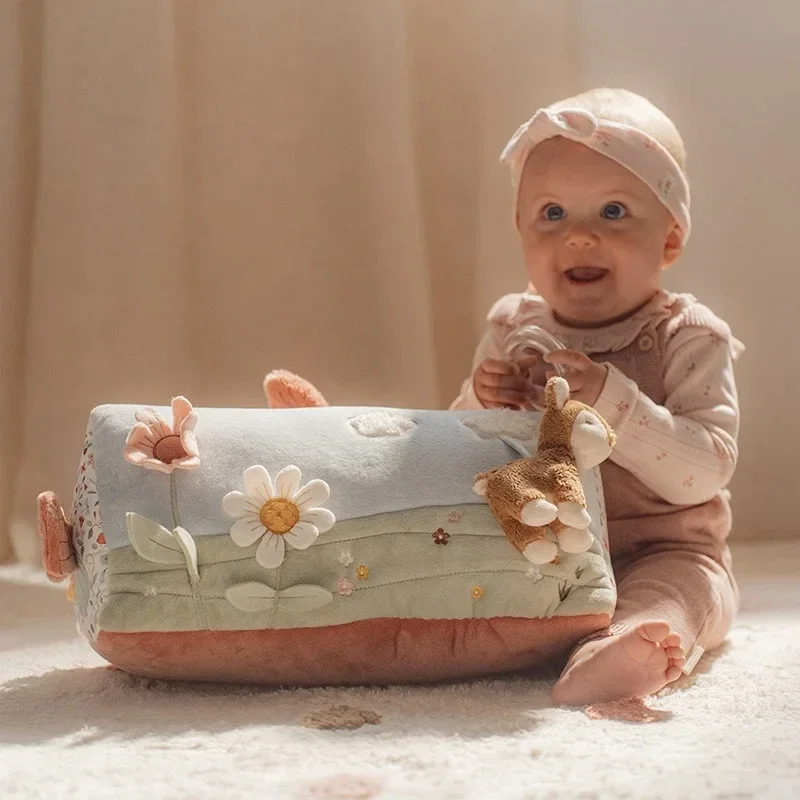 Ontdek de schoonheid en geheimen van Fairy Garden terwijl je op je buik ligt! Deze veelzijdige activiteitendriehoek neemt je kleintje mee op avontuur door een magische tuin. Onderweg valt er veel te ontdekken. Van knisperende bloemblaadjes tot een spiegeltje. Met zoveel activiteiten en verschillende texturen om de zintuigen en verbeeldingskracht te prikkelen zal je baby heerlijk zoet spelen.