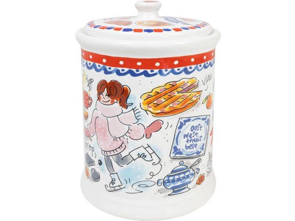 We love Holland! De nieuwe Hollands Glorie lijn van Blond Amsterdam is vormgegeven in frisse rood/wit/blauwe tinten en voorzien van typisch Hollandse illustraties. Op deze voorraadpot staan o.a. ilustraties van een Hollands stelletje, haring en schaatsen.
