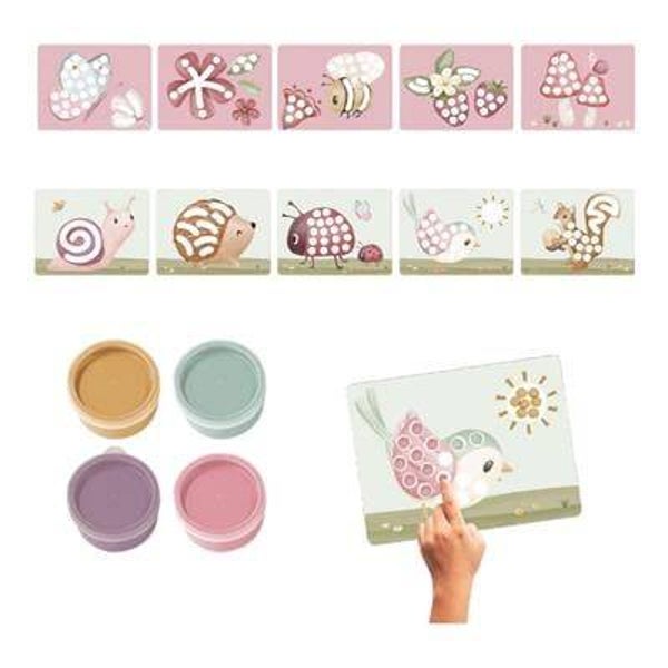 Laat de magie tot leven komen met de Fairy Garden Finger Paint Set. Dit betoverende setje biedt alles wat je kleintjes nodig hebben om hun eigen sprookjesachtige wereld te schilderen. Met een palet van levendige kleuren en schattige feeën, zullen ze zich ondergedompeld voelen in een wereld vol fantasie en avontuur. Gemaakt met veilige, niet-giftige verf, is dit setje perfect voor kleine handjes. Laat je kinderen hun verbeelding de vrije loop laten terwijl ze prachtige kunstwerken creëren geïnspireerd op de betoverende schoonheid van een feeëntuin. Leerpunten: bevordering creativiteit en oog-handcoördinatie, ontwikkeling fijne motoriek.