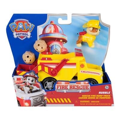 Word lid van het PAW Patrol Brandweerreddingsteam met Rubble en zijn stoere Brandweer Kiepwagen! Deze 20 cm lange PAW Patrol-vrachtwagen is klaar voor actie! Met echte draaiende wielen en authentieke PAW Patrol-details ziet hij eruit alsof hij zo uit de tv-serie komt gereden. Kinderen kunnen heldhaftige missies naspelen: laad de twee meegeleverde speelrotsen in de kiepbak, trek aan de hendel en lanceer ze om de dag te redden! Rubble is ruim 5 cm groot en draagt zijn speciale brandweeruitrusting. Deze PAW Patrol-speelgoedset is PAWsome als cadeau voor een verjaardag, kerst of andere feestdag. Voor nóg meer speelplezier combineer je met het Brandweer Commando Centrum, de Snelvul Brandweerwagen en zes andere brandweerfiguren en voertuigen (elk apart verkrijgbaar). Herbeleef favoriete momenten uit eerdere seizoenen, zoals de Mighty Pups en de PAW Patrol Film, of verzin nieuwe avonturen met de PAW Patrol toren, losse actiefiguren en voertuigen – voor razendsnelle reddingsmissies vol actie!