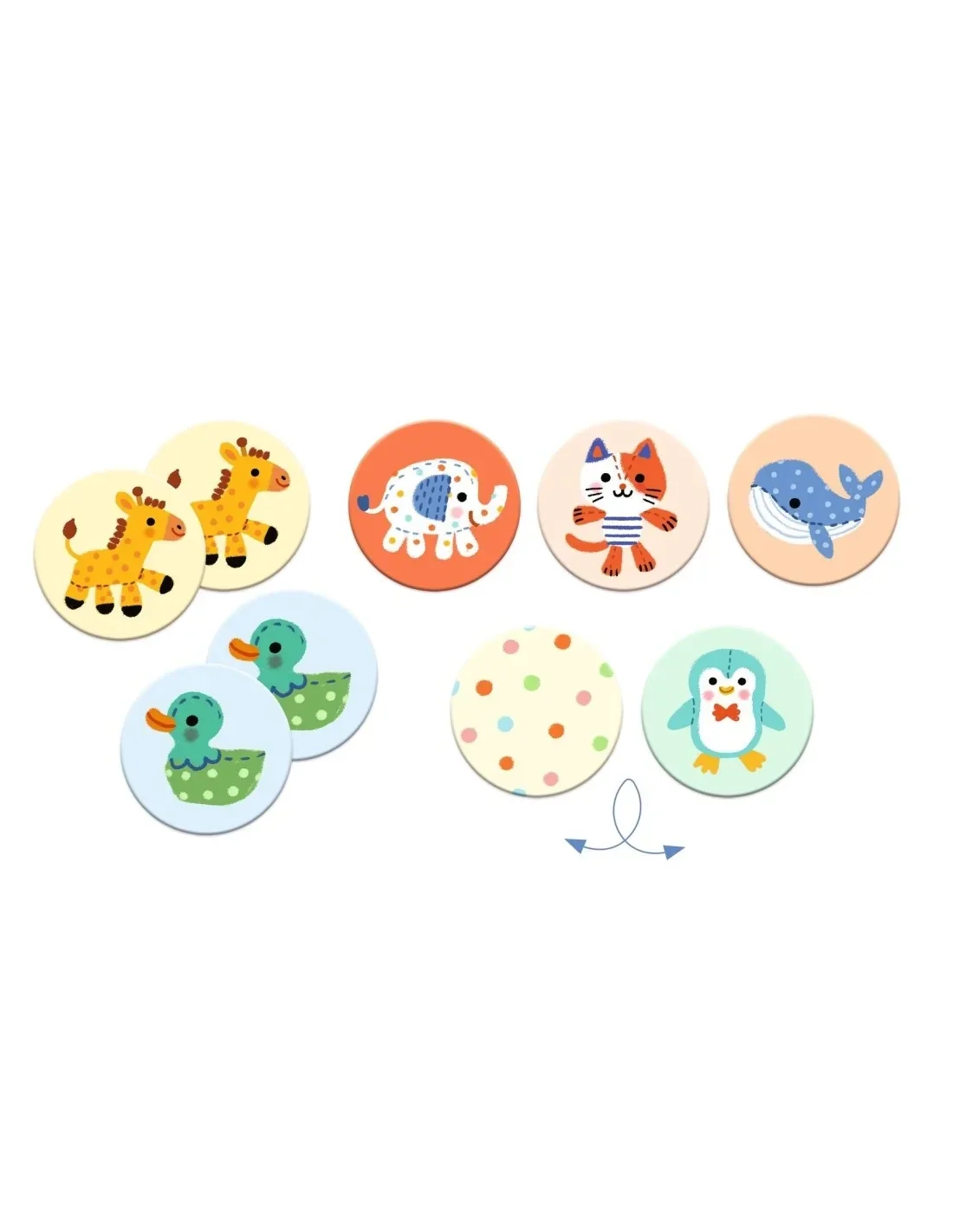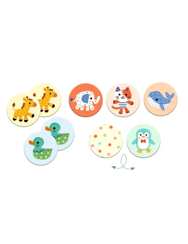 Memo Doudous is een combinatie- en geheugenspel rond het favoriete een dagelijkse thema van het kind: zijn/haar knuffel.