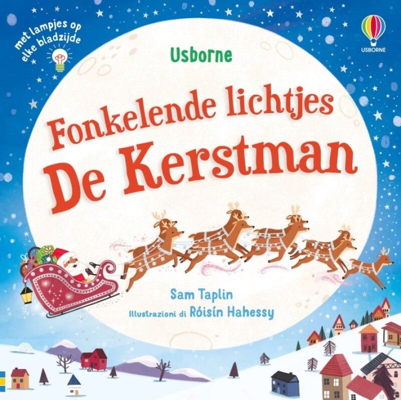 De tien lampjes in dit betoverende boekje begeleiden de Kertman tijdens zijn magische reis op kerstavond. Het verhaal begint in zijn werkplaats, waar zijn elfen de slee volladen, waarna de Kerstman met slee en rendieren door de lucht zweeft: dit is de drukste nacht van het jaar!