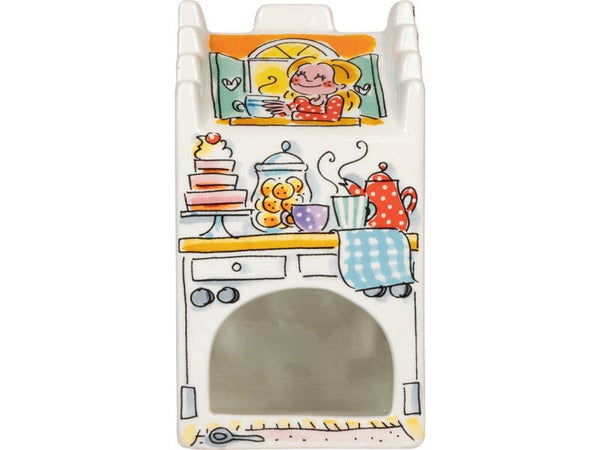 Een huisje om in te wonen? Nee hoor, dit huisje is er om in weg te dromen. Met z’n vrolijke trapgevel, bloemetjes voor het raam en een keuken waar de taart altijd net uit de oven lijkt te komen, straalt dit aardewerk lichthuisje pure gezelligheid uit. Zet er een waxinelichtje in en zie hoe de ramen warm oplichten, alsof er binnen iemand staat te roeren in de pan en op je wacht met een dampende kop thee. Dit is home sweet home op z’n Blondst. Perfect voor op de vensterbank, je bijzettafel of naast de theepot. Ontdek meer items uit de Even Bijkletsen collectie van Blond Amsterdam.