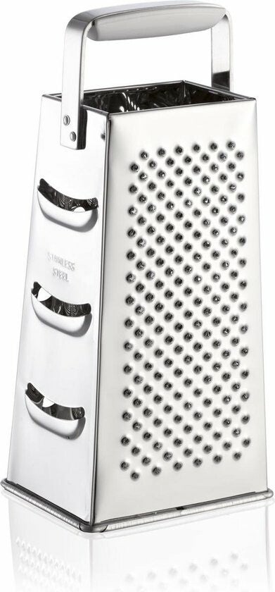 Of grof of fijn geraspt of in reguliere plakjes: vier raspen oppervlakken hakken gemakkelijk komkommers, aardappelen, kaas en elke vorm van groente. De ideale all-round rasp voor de gevarieerde geprepareerde schotel van rauwe groenten. Een handgreep met kunststof inzetstuk zorgt voor een comfortabele bedrijf. Het schoonmaken in de vaatwasser. 3 jaar garantie.