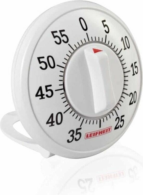 Een luchtige cake of mals gebraden vlees op de minuut nauwkeurig gegaard – het lukt gegarandeerd met de kookwekker ComfortLine van Leifheit, het perfecte keukenhulpje voor de exacte bereidings- en gaartijd. Met de handige draaischakelaar en overzichtelijke minutenindeling kun je de tijd op de minuut nauwkeurig instellen. Maximaal instelbare tijd: 60 minuten.