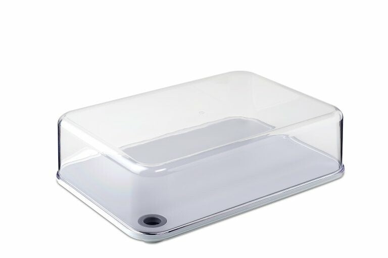 De grote Modula stolp van Mepal is voorzien van een uitneembare grijze snijplank en geeft direct zicht op de inhoud, ook in de koelkast! De transparante stolp zorgt voor een goede afsluiting, waardoor deze doos geschikt is voor het bewaren én presenteren van diverse etenswaren, zonder nare luchtjes. De Modula bewaar- en opbergdozen van Mepal zijn verkrijgbaar in verschillende maten en uitvoeringen, liggen goed in de hand en zijn makkelijk te openen. Bovendien zijn ze stapelbaar en vaatwasmachinebestendig. Hoe veeleisend u ook bent: Modula bewaardozen zijn erop berekend!