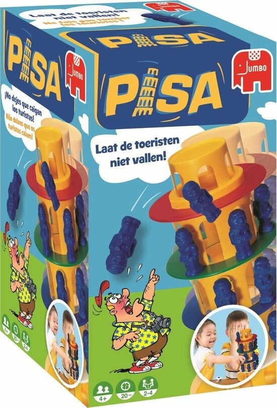 Gooi de dobbelsteen om te bepalen waar de toerist op de toren moet worden gezet. Maar pas op, de toren wiebelt! Als er een toerist valt is deze voor jou. Degene die als eerste al zijn toeristen op de toren heeft gezet wint. De toren van Pisa is een razend spannend actiespel waar je nooit genoeg van krijgt!