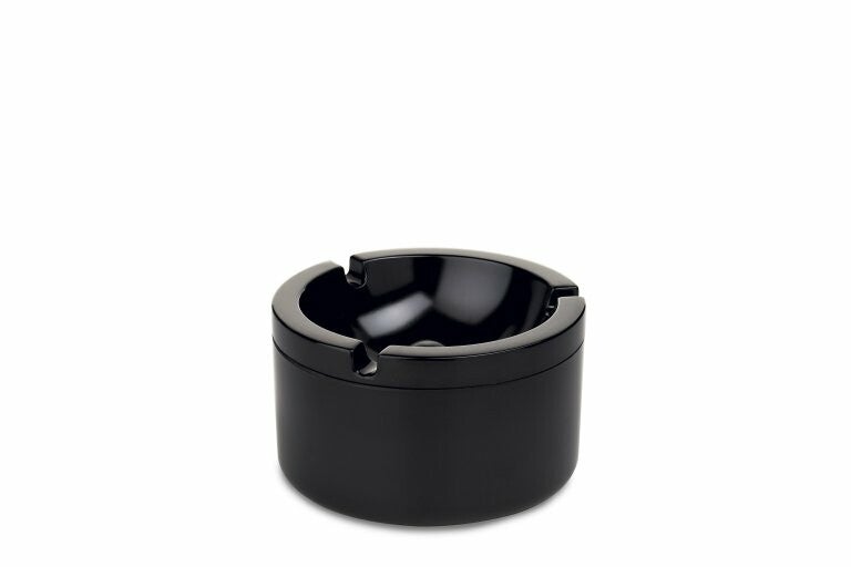 zwarte asbak met deksel van Mepal. De ideale asbak voor binnen en buiten is vervaardigd uit vlambestendig melamine. Met zijn 10 centimeter doorsnee is hij gemakkelijk te hanteren, maar verder is hij alles behalve doorsnee. De deksel maakt de asbak windproof, dooft smeulende resten in een mum van tijd en beperkt nare geurtjes tot het minimum. Ook het reinigen stelt niks voor. Een mooie opsteker dus, deze asbak!