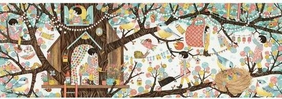 Boomhut is een puzzelgalerij van 200 stukjes. Verborgen in het hart van het bloeiende bladerdak is het leven zoet en kleurrijk.