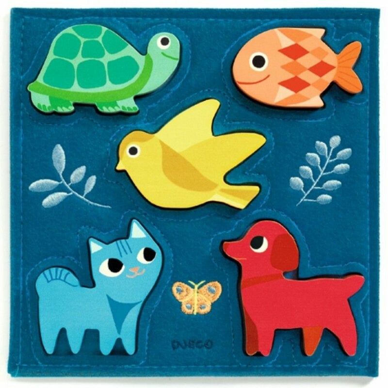 Een heerlijk kleurrijke vilten dierenpuzzel van Djeco. De houten dieren zijn dik, helder van kleur en passen makkelijk in het vilten bord, waardoor dit een perfecte puzzel is voor kleine handjes