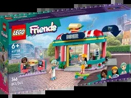 Kinderen vanaf 6 jaar kunnen allerlei verhalen naspelen met deze LEGO® Friends Heartlake restaurant in de stad (41728) bouw- en speelset. Met de vele accessoires kunnen ze doen alsof ze broodjes bereiden of bestellen als klant. De set bevat een drive-through, zitplaatsen buiten, een speelautomaat en een bewegende jukebox. Kinderen kunnen de ingrediënten in de koelkast gebruiken om broodjes te maken. Andere accessoires zijn 2 drankjes, geld, 3 boterhammen, een servethouder, een prullenbak en eenskateboard. Er is zelfs een ondeugende kat die graag het restaurant bezoekt!