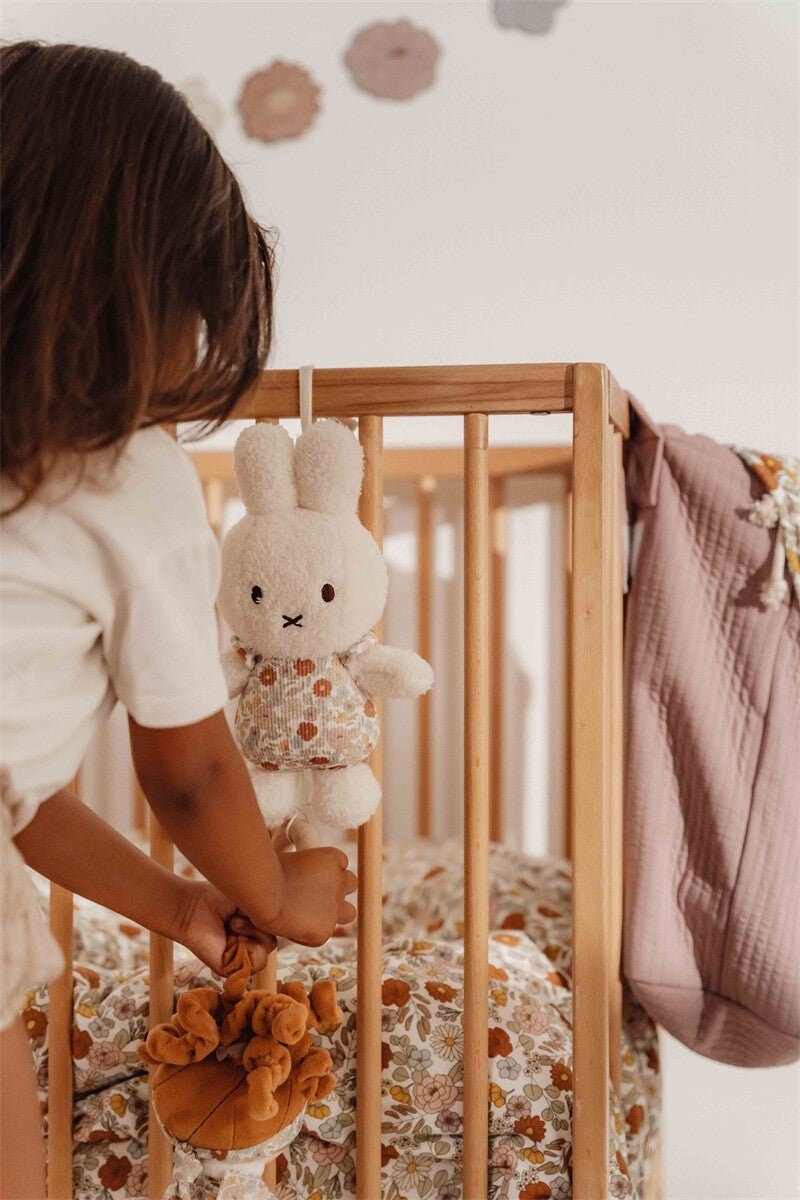 Wil je een slaapliedje horen? Trek aan het touwtje en nijntje begint te zingen! Als deze schattige kleine nijntje muziekdoos een liedje voor je speelt zal het je helpen kalmeren, ontspannen en in slaap te vallen. Het iconische konijntje is gekleed in Vintage Little Flowers van Little Dutch en zal prachtig staan in de babykamer. De muziekdoos is makkelijk te bevestigen aan box, ledikant of dressoir. Maar houd dit nijntje altijd buiten bereik van je kleintje.