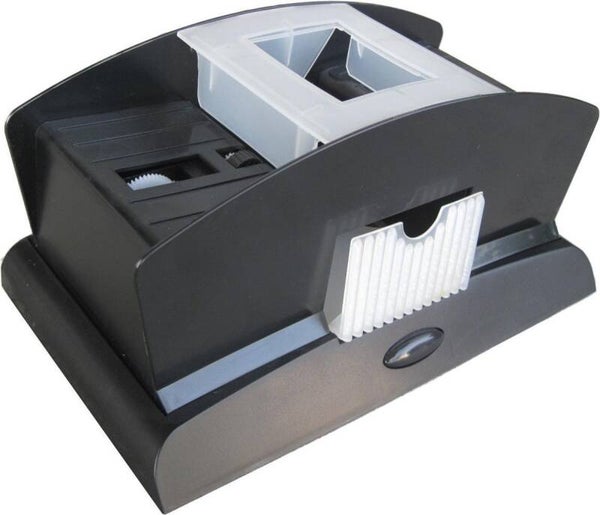 Automatisch Kaarten schudmachine Deluxe. Wordt zonder batterijen en kaarten geleverd. Machine werkt het beste met kaarten met linnenstruktuur. Met rubberen wieltjes ter bescherming van uw kaarten.